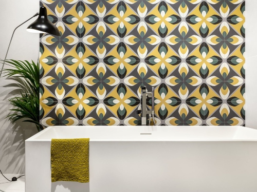 SKU: HT-FUN AUTUMN 01, HT-FUN AUTUMN 02, HT-FUN JOY 01, HT-FUN JOY 02, HT-FUN PLAY 01, HT-FUN PLAY 02Fun - the art of interpreting ceramic materials with bright, dynamic and vibrant colours. A creative and bold proposal, which rekindles the colourful soul of the ceramic material, in the wake of the recent trend that rewards the most intense, dynamic and vibrant colours in furniture and design. The rediscovery of solid colours with full and intense tones is combined with a passion for geometric patterns and decorations. Inspired by the unforgettable 60s-70s, these textures interact beautifully with furnishing and accessories with a vintage flavour that have been back in fashion again for some time, in the original or revisited versions.